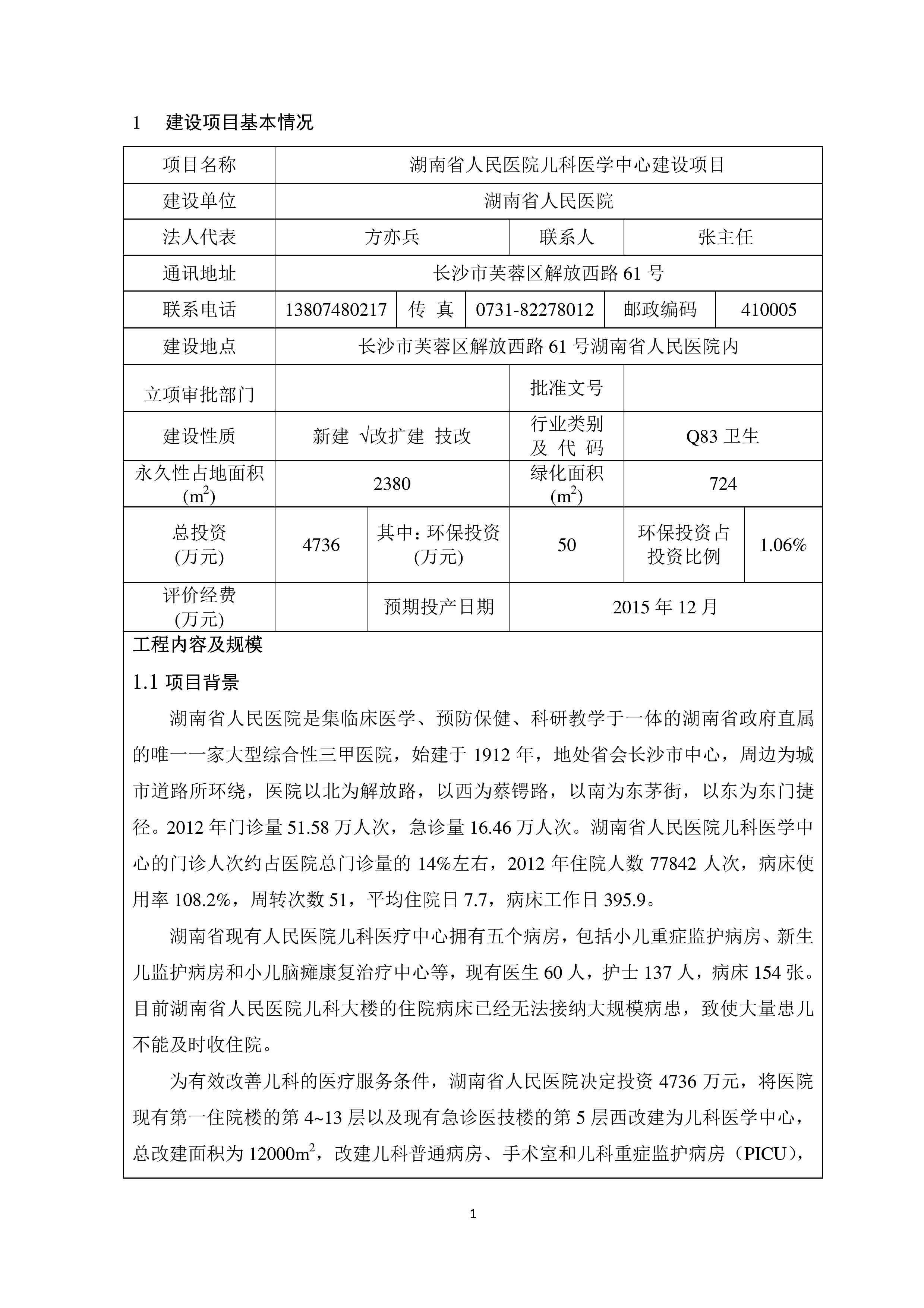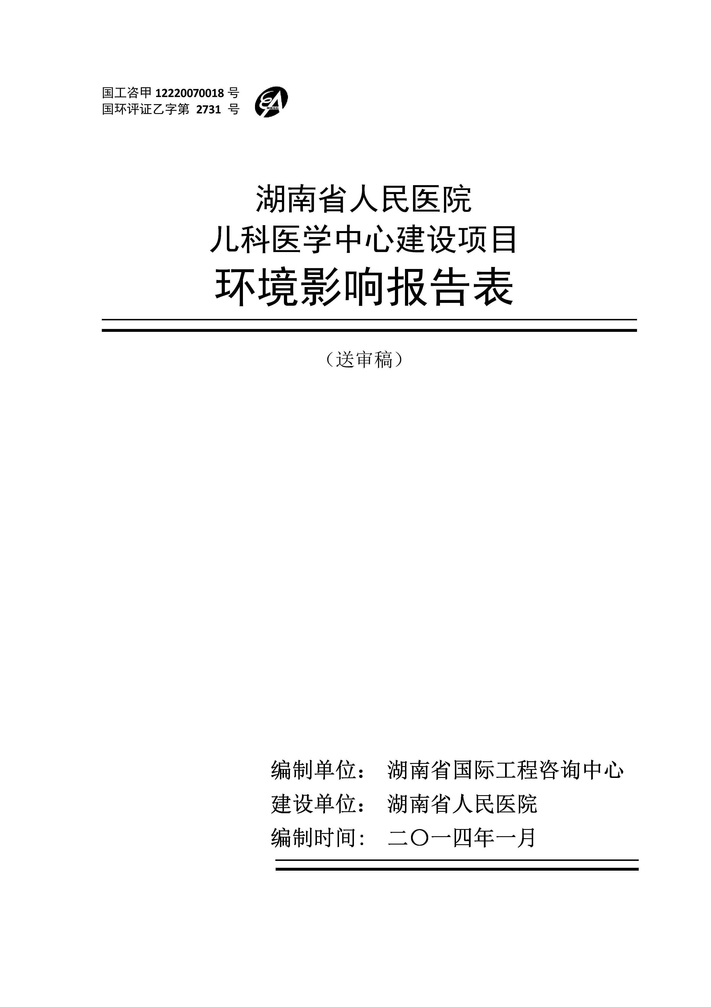 湖南省人民醫(yī)院兒科醫(yī)學(xué)中心建設(shè)項(xiàng)目環(huán)境影響報(bào)告表(送審稿)