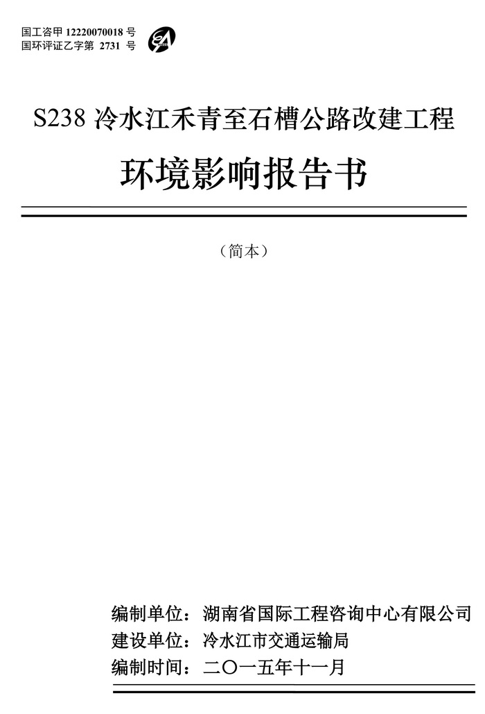 S238冷水江禾青至石槽公路改建工程環(huán)評公示(簡本)