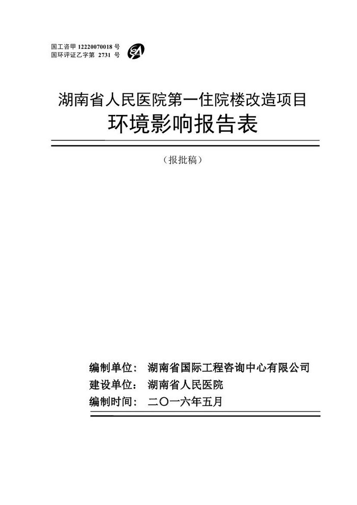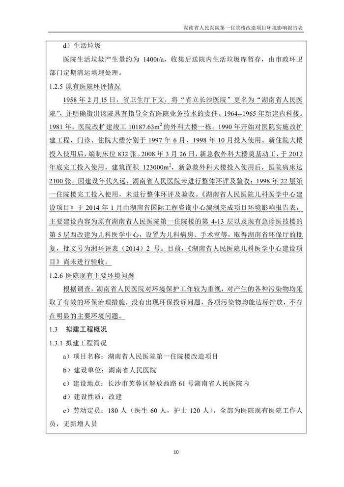 湖南省人民醫(yī)院第一住院樓改造項(xiàng)目環(huán)評(píng)報(bào)告表