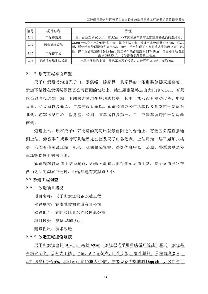 武陵源天子山索道設(shè)備改造駿工環(huán)保驗(yàn)收調(diào)查報(bào)告