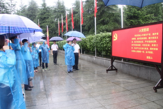 緊接著,在毛主席銅像前,全體黨員面對鮮紅的黨旗,高舉右手,神情莊重,齊聲重溫了入黨誓詞。