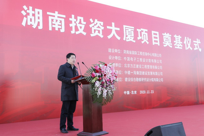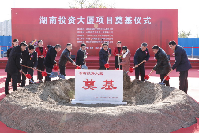 11月23日上午,(北京)湖南投資大廈項(xiàng)目奠基儀式在北京市豐臺區(qū)麗澤金融商務(wù)區(qū)隆重舉行。湖南省發(fā)展改革委黨組成員、湘西辦主任杜中華,湖南湘投控股集團(tuán)公司黨委書記、董事長鄧軍民,黨委副書記、董事張崇政,北京麗澤金融商務(wù)區(qū)管委會副主任關(guān)芳,北京麗澤金融商務(wù)區(qū)控股公司董事長楊友強(qiáng),湖南省國際工程咨詢公司黨委書記、董事長詹瓊雷,黨委副書記、總經(jīng)理曹雄鷹,中建一局(集團(tuán))有限公司副總經(jīng)理左強(qiáng),中建一局建設(shè)發(fā)展有限公司董事長廖鋼林等近百人出席奠基儀式。儀式由張崇政副書記主持。