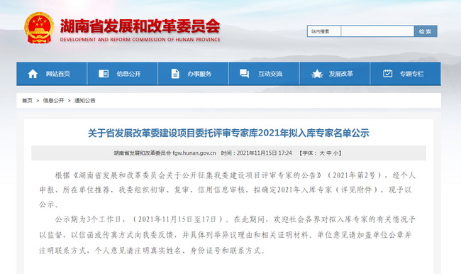 近日,根據(jù)《湖南省發(fā)展和改革委員會(huì)關(guān)于公開(kāi)征集我委建設(shè)項(xiàng)目評(píng)審專(zhuān)家的公告》(2021年第2號(hào)),經(jīng)省發(fā)展改革委審核研究決定,省發(fā)展改革委建設(shè)項(xiàng)目委托評(píng)審專(zhuān)家?guī)?021年擬入庫(kù)專(zhuān)家名單正式發(fā)布,我司謝盛文等19名專(zhuān)家成功入選。