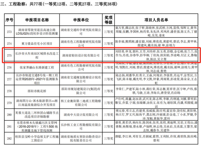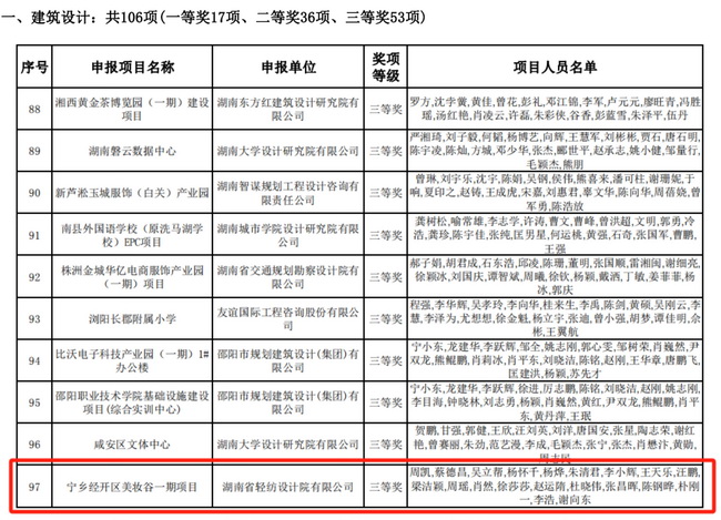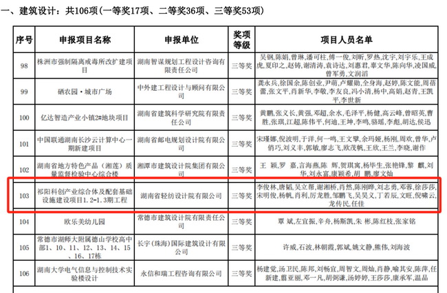 近期,省勘協(xié)公布了2023年度湖南省優(yōu)秀工程勘察設(shè)計(jì)獎(jiǎng)評(píng)選結(jié)果,湘咨集團(tuán)所屬省輕紡院共斬獲5項(xiàng)工程勘察設(shè)計(jì)獎(jiǎng)。其中,寧鄉(xiāng)經(jīng)開(kāi)區(qū)美妝谷一期項(xiàng)目、祁陽(yáng)科創(chuàng)產(chǎn)業(yè)綜合體及配套基礎(chǔ)設(shè)施建設(shè)項(xiàng)目1.2-1.3期工程榮獲建筑設(shè)計(jì)獎(jiǎng);湖南中煙工業(yè)有限責(zé)任公司郴州卷煙廠易地技術(shù)改造項(xiàng)目榮獲工業(yè)設(shè)計(jì)獎(jiǎng);寧鄉(xiāng)經(jīng)開(kāi)區(qū)美妝谷一期項(xiàng)目、長(zhǎng)沙市火車(chē)南站區(qū)域排水改造工程榮獲工程勘察獎(jiǎng)。
