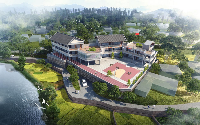 磨老小學地處湘黔邊區(qū),位置特殊,責任重大。項目自開工以來,面對基礎條件差,規(guī)劃標準高,時間緊等諸多挑戰(zhàn),民建及市政院設計團隊迎難而上,主動作為,高標準、嚴要求,優(yōu)化資源配置,倒排工期、責任到人,在2個月內(nèi)優(yōu)質(zhì)高效地完成了項目的初步設計和施工圖設計,為邊區(qū)人民眾遞交了一份滿意的答卷。最終建成的磨老小學規(guī)劃用地面積2191平方米,建筑占地680 平方米,總建筑面積達1847 平方米,設計容納學生共175人,此外新建了學生運動場、食堂和學生就餐間,可完全滿足師生教育教學和生活的需要。