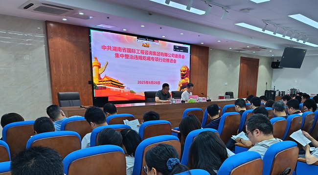 6月26日上午,湘咨集團(tuán)召開集中整治違規(guī)吃喝專項行動推進(jìn)會。集團(tuán)黨委副書記、董事、總經(jīng)理李云主持并講話,黨委委員、紀(jì)委書記鄧乾坤傳達(dá)了湖南能源集團(tuán)推進(jìn)會議精神和《關(guān)于開展集中整治違規(guī)吃喝專項行動的工作方案》、規(guī)范公務(wù)接待有關(guān)事項的通知精神。會議組織觀看了《鐵規(guī)矩 硬杠杠》警示教育片。